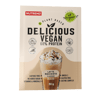 Erbsenproteinisolat 42%, Kichererbsenproteinkonzentrat 30%, Hanfprotein 5,5%, Kürbiseiweiß 5%, Kakao, gemahlene Leinsamen, Inulin, Getreidemischung (glutenfrei, Quinoa, Amaranth, Buchweizen, Hirse), Aroma, Trennmittel Siliziumdioxid, Digezyme® Verdauungsenzym-Mischung (Amylase, Protease, Laktase, Lipase und Cellulase), AB-Fortis® mikroverkapseltes Eisen (Eisensaccharat, Calciumalginat-Träger), Süßstoffe Sucralose und Steviolglycoside, Riboflavin, Kaliumjodat, Cyanocobalamin. Kann Spuren von Soja enthalten.